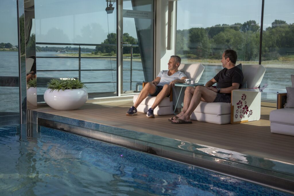 Eles são projetados para navegar em águas rasas, com cabines voltadas para o rio — muitas com varandas panorâmicas. As embarcações da Scenic e da Emerald Cruises, por exemplo, oferecem suítes amplas, restaurantes de alta gastronomia, spas, lounges envidraçados e até piscinas retráteis.