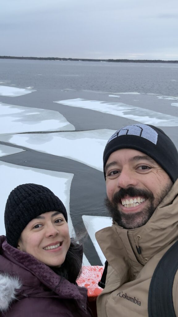 O passeio acontece entre dezembro e março, e cada fase da temporada oferece uma experiência diferente. No início, como no nosso caso, o gelo ainda está se formando e o navio precisa rasgar com mais força as camadas finas. Mais pra frente, entre janeiro e fevereiro, o gelo já está espesso o suficiente para que os visitantes possam caminhar sobre ele, ampliando ainda mais a vivência.