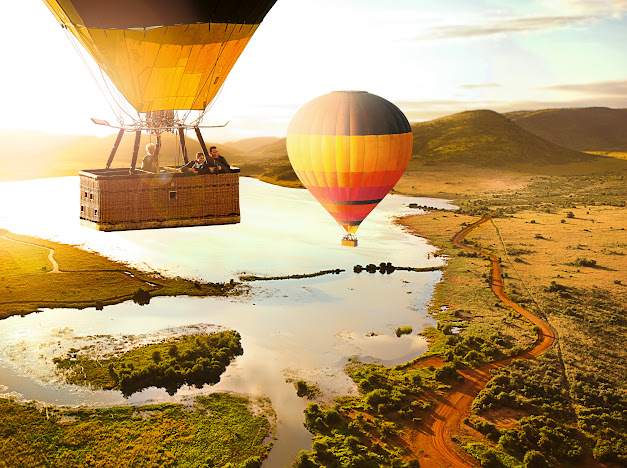 Ali, o safari se mistura à aventura — com passeios de barco, trilhas e sobrevoos panorâmicos.